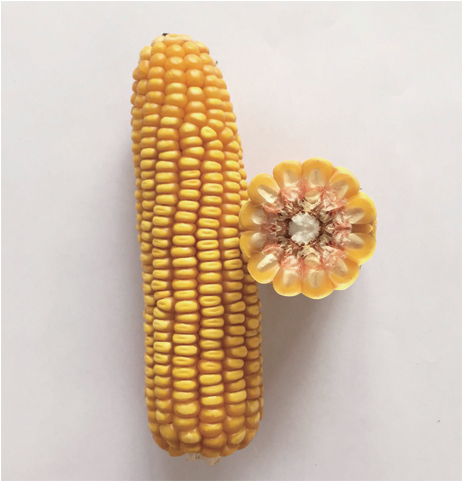 特征特性:幼苗葉鞘紫色,葉片綠色。株型半緊湊,株高232cm,穗位高79cm,全株葉片數(shù)15-17片,雄穗分枝數(shù)4-6個(gè),花藥黃色,穎殼綠色,花絲紫色;穗錐形,穗軸紅色,穗長14.6cm,穗粗4.5cm,軸粗2.6cm,穗行數(shù)14,行粒數(shù)33粒;籽粒黃色、半馬齒型,千粒重323.6g,出籽率89.3%;成株根系發(fā)達(dá),莖稈堅(jiān)韌,抗倒伏。高抗瘤黑粉病、莖基腐病和絲黑穗病,中抗大斑病。甘肅春播生育期90-95天,屬極早熟品種。適宜在海拔1800m以下,≥10℃有效積溫達(dá)2200℃以上,雨量充沛或有灌溉條件的西北春播區(qū)種植。 產(chǎn)量表現(xiàn):2015年品比試驗(yàn)在密度6000株/畝下,平均畝產(chǎn)達(dá)899kg;8000株/畝下,平均畝產(chǎn)達(dá)947kg。 |